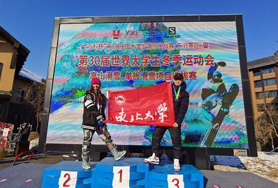 On December 22, the 7th Chinese College Students Skiing Challenge & the 30th Winter Universiade Alpine Skiing and Snowboarding Competitions organized by the Federation of University Sports of China (FUSC) ended at the Songhua Lake Ski Resort in Jilin Province. Nearly 200 athletes from 20 colleges and universities nationwide took part in the competitions. Two students from the Physical Education Department of NEU won two individual championships.