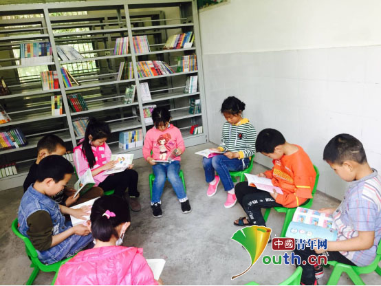 The students of Baoquan Primary School are in a reading class at the loving library.