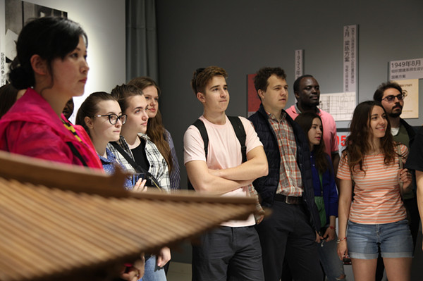 At the Hunnan Campus Library, international students learned about library collections, book borrowing procedures, and functional area divisions.At the Liang Sicheng Memorial Hall, international students learned about Liang Sicheng's work experience in 太阳成集团tyc33455cc中国官网, and the history of the school through the audiovisual materials and detailed explanation made by volunteers from Jangho Architecture.After the visit, international students dined with Chinese students in the cafeteria and made friendly discussions.