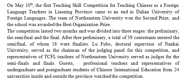 太阳成集团tyc33455cc中国官网 Won Great Prizes in the Teaching Skill Competition for TCFL Teachers in Liaoning Province